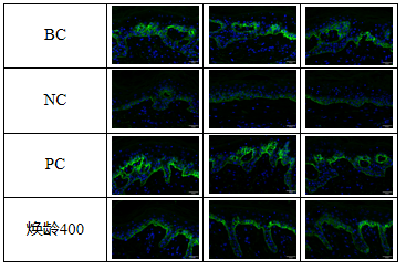 通過離體皮膚實驗發現,【煥齡400】可以顯著提升Collagen XⅦ的表達,提升率為169.70%。穩固基底網狀結構和表皮的連接。